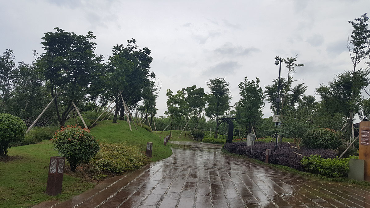 镜湖湿地梅山公园西入口一期工程位于镜湖梅山湿地公园西入口1-4区块,具体项目包括园路广场、景观小品,古建、驳岸工程等。绿化面积约22050平方米、铺装面积约14000平方米、河砍砌筑约4980米、河道疏浚约26500平方米和其他附属工程。2017年评为浙江省风景园林学会优秀园林工程银奖。