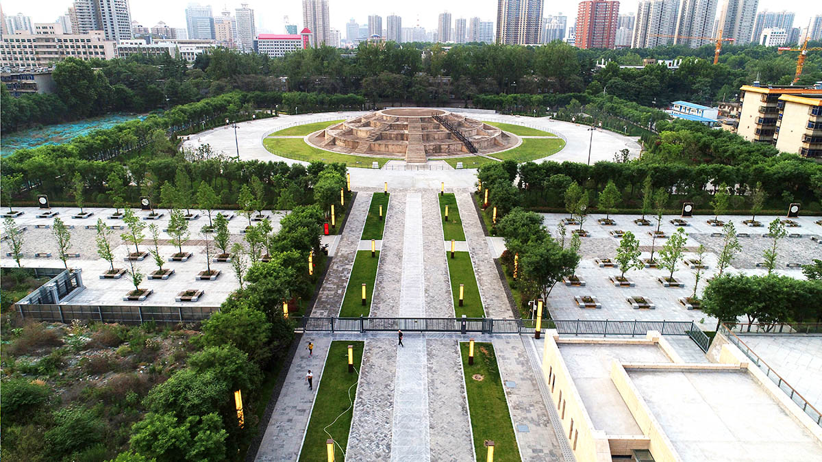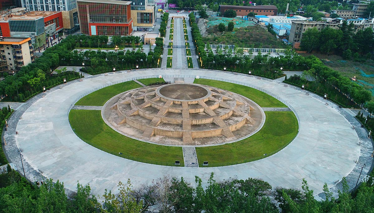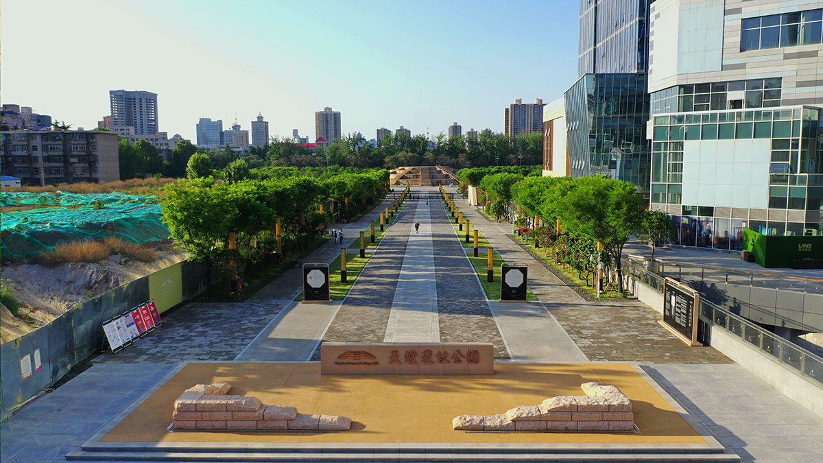“唐长安城圜丘(天坛)遗址保护展示及周边环境整治工程”位于西安市长安路以东、天坛路以南、雁展路以北,占地面积约60亩。本工程主要包括:园区四周混凝土挡土墙及铁艺栏杆、圜丘周边青砖铺装及透水混凝土、御道大青石铺装、御道东西广场花砖铺装、木凳及相关配套设施、消防、绿化、电气、给排水工程。