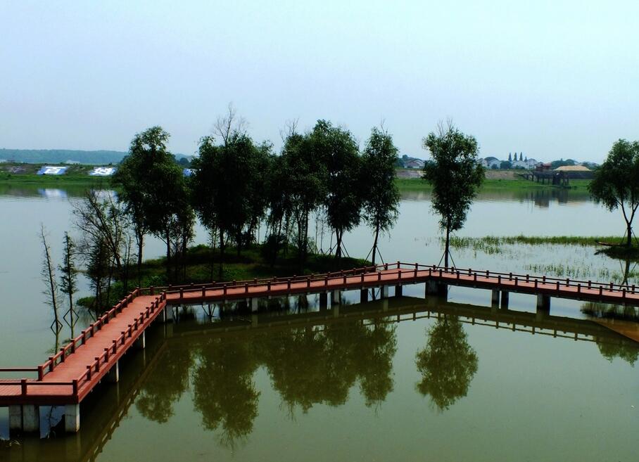 公园二期梅园入口处就有一简朴雅致曲折形的小平桥,其主要作用不在于便利交通,而是要延长游览行程和时间,以扩大空间感,在曲折中变换游览者的视线方向,做到“步移景异”,还点缀了水景,增加了水面层次,所以此曲桥在园中的价值已超过了交通功能。