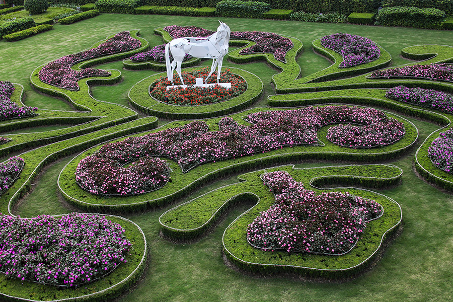 3.3.2、装饰性小品。可以移动的花球,花箱,可以经常更换花卉,木景墙等,在园林中起点缀作用。
