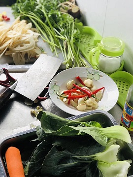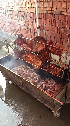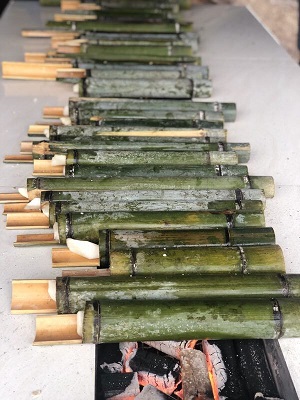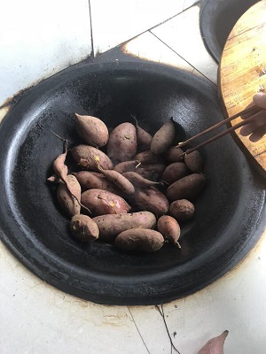 一下车,做了简单分工后各自就动手,开始准备午餐。食材的丰盛超乎了我想象,有现摘的各种新鲜蔬菜,还有番薯、玉米以及烤全羊,主食吃的是竹筒饭。第一盘菜出锅,紧接着黑的、红的、绿的、熟的、生的、焦的、辣的各种出锅。一声开饭了,大家也是吃得狼吞虎咽,龇牙咧嘴。自给自足,果然吃起来分外香啊。