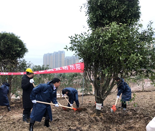 植树过程中,大家边种树,边交流,春节后上班第一天开展义务植树活动非常有意义,精心管理好树苗,让新苗茁壮成长。全市上下要深入践行“绿水青山就是金山银山”理念,深入开展群众性绿化造林活动,扎实推进“创建园林城市,打造宜居环境”建设,加强特色树种的培育和种植。要结合美丽城乡建设和乡村振兴战略,提高全民生态绿色意识,扮靓绿色生态家园,守护好绿水青山,让东阳的生态底色更亮丽,让老百姓的生活更加健康、舒适,促进美丽环境、美丽经济、美好生活的有机融合。