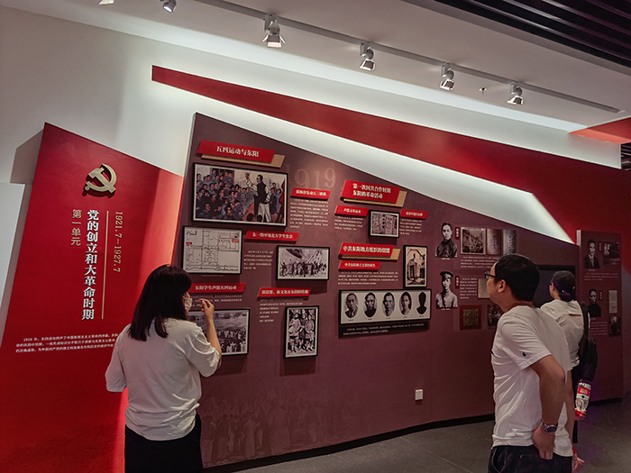 大家跟随着传统照片及多媒体屏幕中画面,参观了新民主主义革命时期东阳人民艰难曲折、不屈不挠的抗争历程,对邵飘萍、金佛庄等革命者的事迹、中共一大会址等进行了解,参观了社会主义革命和建设时期、改革开放和社会主义现代化建设新时期、中国特色社会主义新时代等三个展厅,重现了一幅幅宝贵的历史画面,一个个震撼人心的故事,一段段历史文字……这里铭刻着那一段段让人无法忘却的历史。瞻仰老一辈革命家们的革命历程,深切感受到了历史变迁,了解地方党组织在各个时期的初心和使命,让大家真切地感受了信仰的力量。